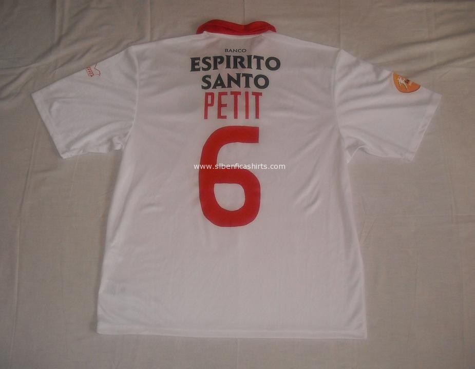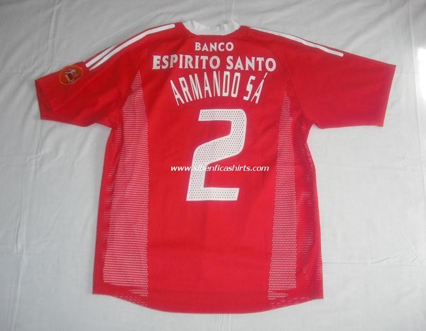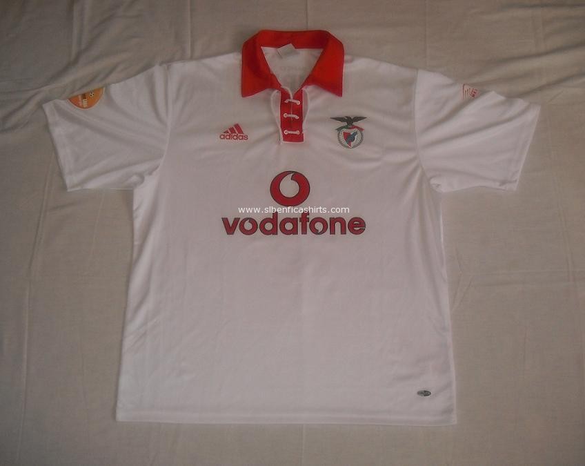 Apresento três Camisolas: uma branca de manga curta usada pelo Petit, uma vermelha de manga curta usada pelo Cristiano contra o Inter de Milão e uma vermelha de manga curta usada pelo Armando ( Para mais informações consulte a época 02/03). Cristiano Rocha Canedo Roland nasceu a 04-10-1976, natural de Porto Alegre ( Brasil). Ingressou no SLB na época de 2002/03, onde totalizou 2 épocas de Águia ao peito, ocupava a posição de Defesa. Armando Gonçalves Teixeira nasceu a 25-09-1976, natural de Strasbourg ( France). Ingressou no SLB em 2002/03, onde totalizou 6 épocas de Águia ao peito, ocupava a posição de Médio. Todas as blusas são da marca Adidas com o patrocínio da Vodafone. |